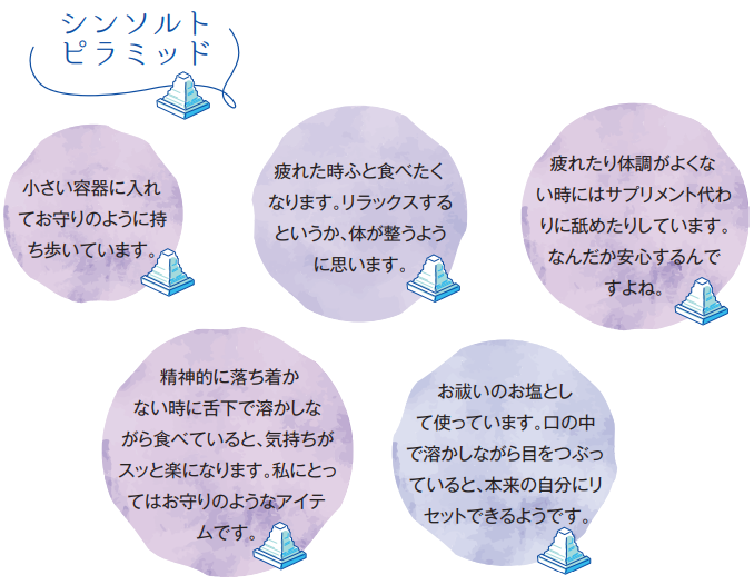 大自然のエネルギーと神秘的なパワーに満ち溢れる高エネルギー塩を暮らしの様々なシーンでお役立てください。