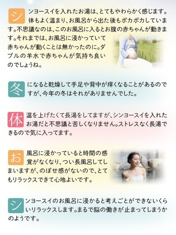 『シンヨースイ』は、生命を育む羊水をイメージして開発した入浴液です。