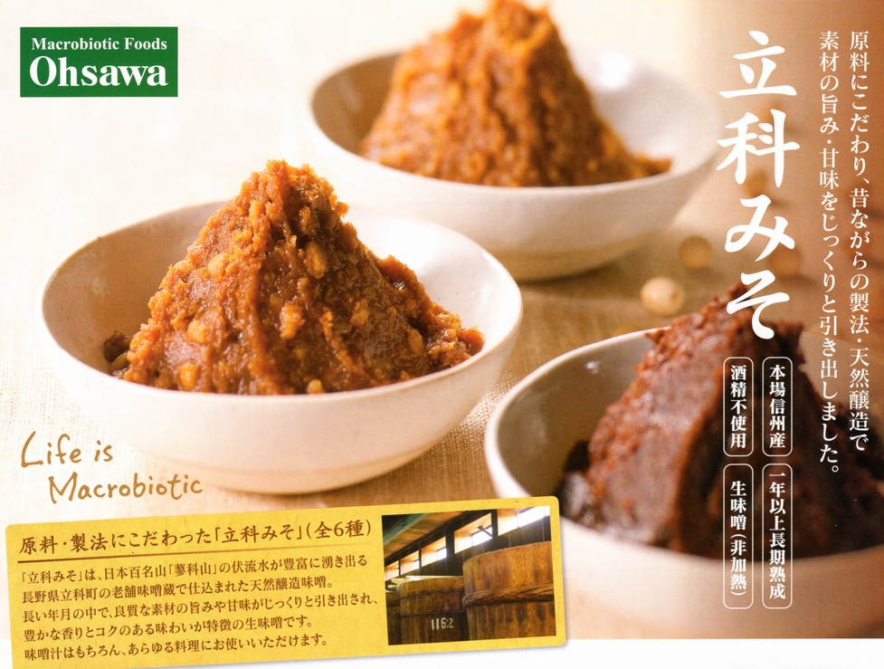 麦味噌{大麦(国内産)、大豆(国内産)、天日塩(オーストラリア産)}、米みそ{米(国内産)、大豆(国内産)、天日塩(オーストラリア産)} |