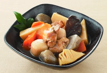 鶏肉、たけのこ、人参、里芋、こんにゃく、椎茸の6種類の具がバランス良く入った筑前煮です。